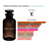 ژاک کاوالیه این ماده سرکش، زیبا و سرمستکننده را بهطرز ویژهای با رگههایی از لوبان و جلوههای خاص تمشک آمیخته میسازد. در دوردستها، بوی روایح دودی را احساس میکنیم که بهسوی آسمان شناور است. لویی ویتون آمبر نومد ــ بوی عود هرگز تا این اندازه اسرارآمیز نبوده است.